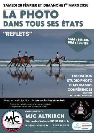 Le club photo de la MJC ALTKIRCH vous invite à son exposition du Samedi 28 février au Dimanche 1er mars 2026 de 14h à 18h le 1er jour et de 10h à 18h le 2ème jour à la MJC Altkirch, 1A rue des Vallons 68130 ALTKIRCH